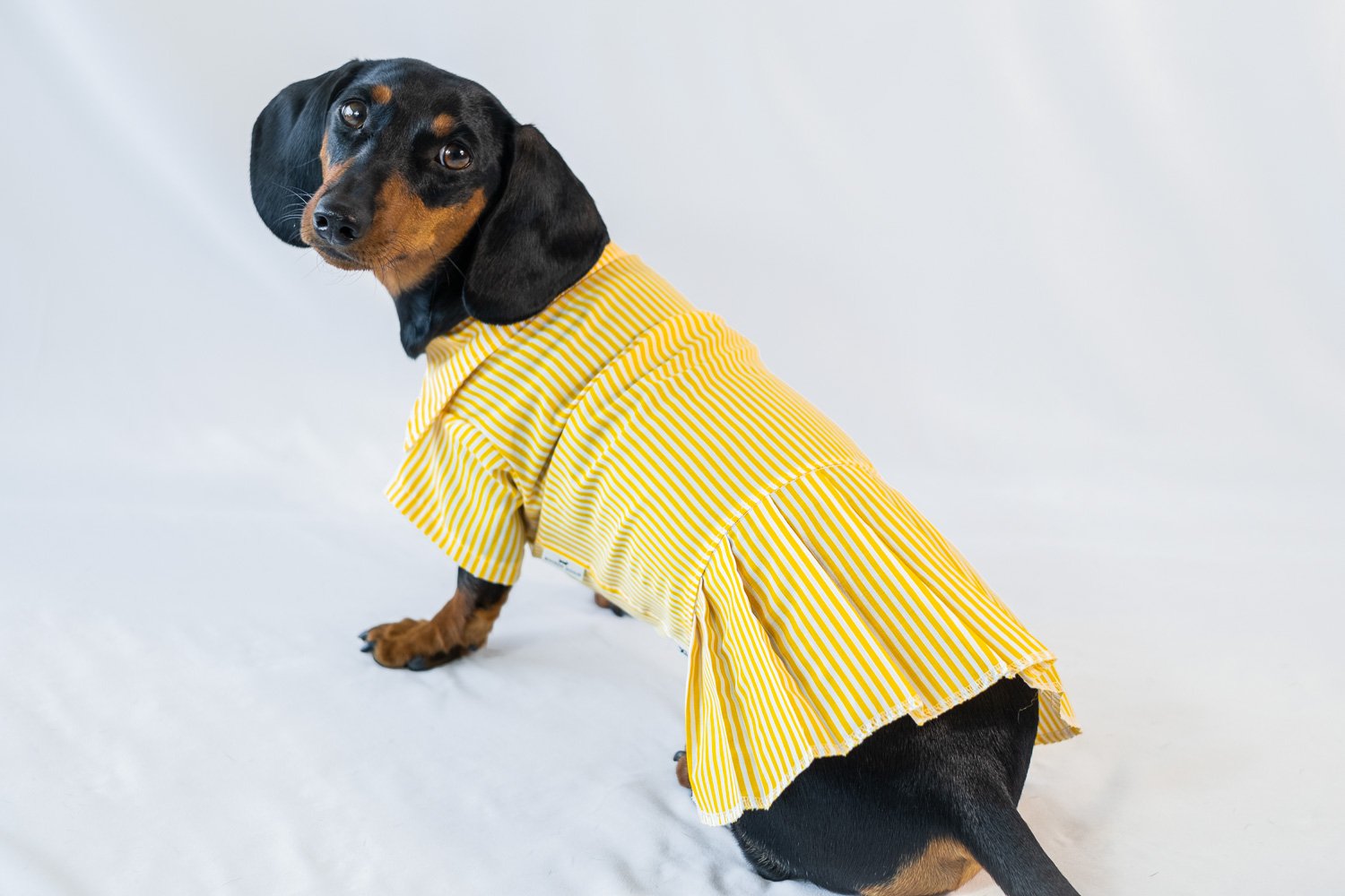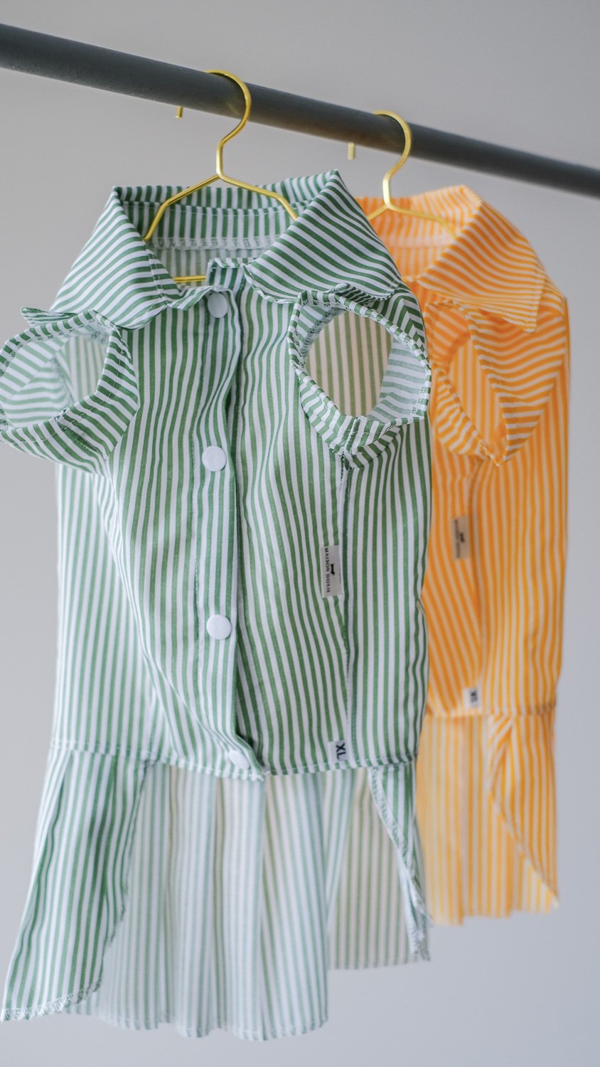 Class is in session with “The Preppy Paws” pleated dress! This charming ensemble features a timeless vertical stripe pattern and a playful pleated skirt that swishes beautifully with every wag. Specifically tailored to flatter the unique, elongated frame of a dachshund, it ensures a perfect fit without compromising on comfort. Crafted from lightweight, breathable fabric, this dress is the ideal choice for sun-drenched strolls or stylish cafe outings.